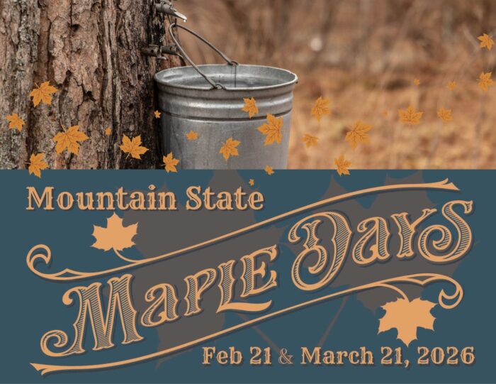 Mountain State Maple Days will take place Saturday, February 21 & Saturday, March 21, 2026 @ 10 a.m. – 4 p.m.