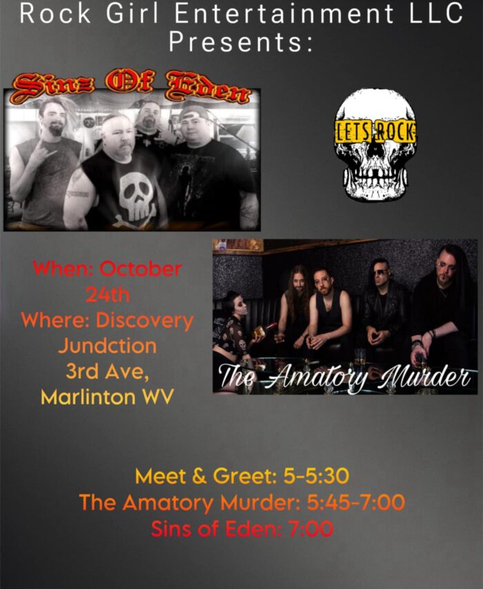 Sinz of Eden from Charleston, WV and The Amatory Murder from Brooklyn, NY will play at Discovery Junction on October 24th.